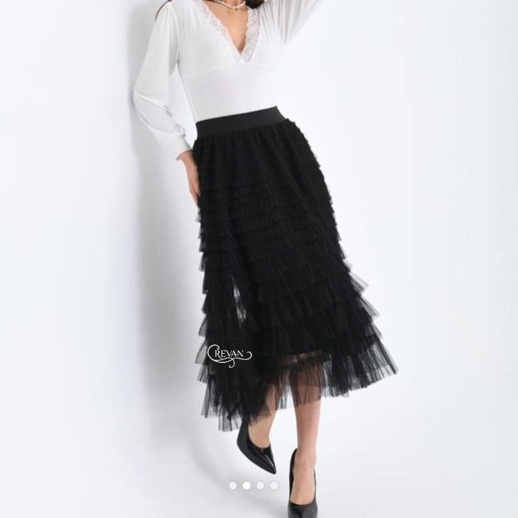 أضيفي لمسة من الأناقة العصرية إلى إطلالتك مع التنورة الرائعة المنسوجة من التل .