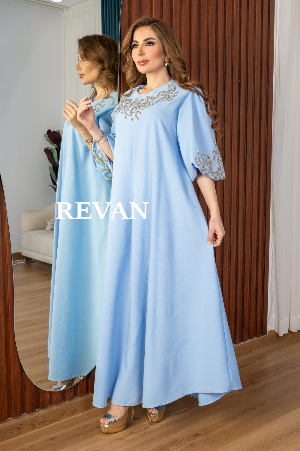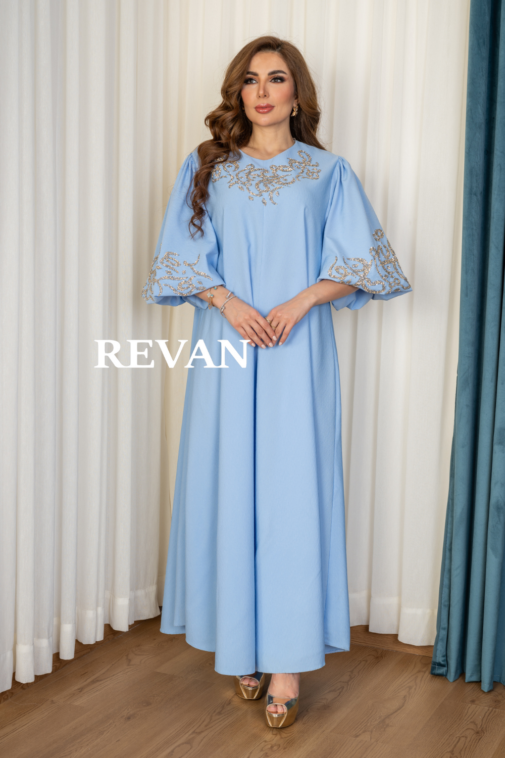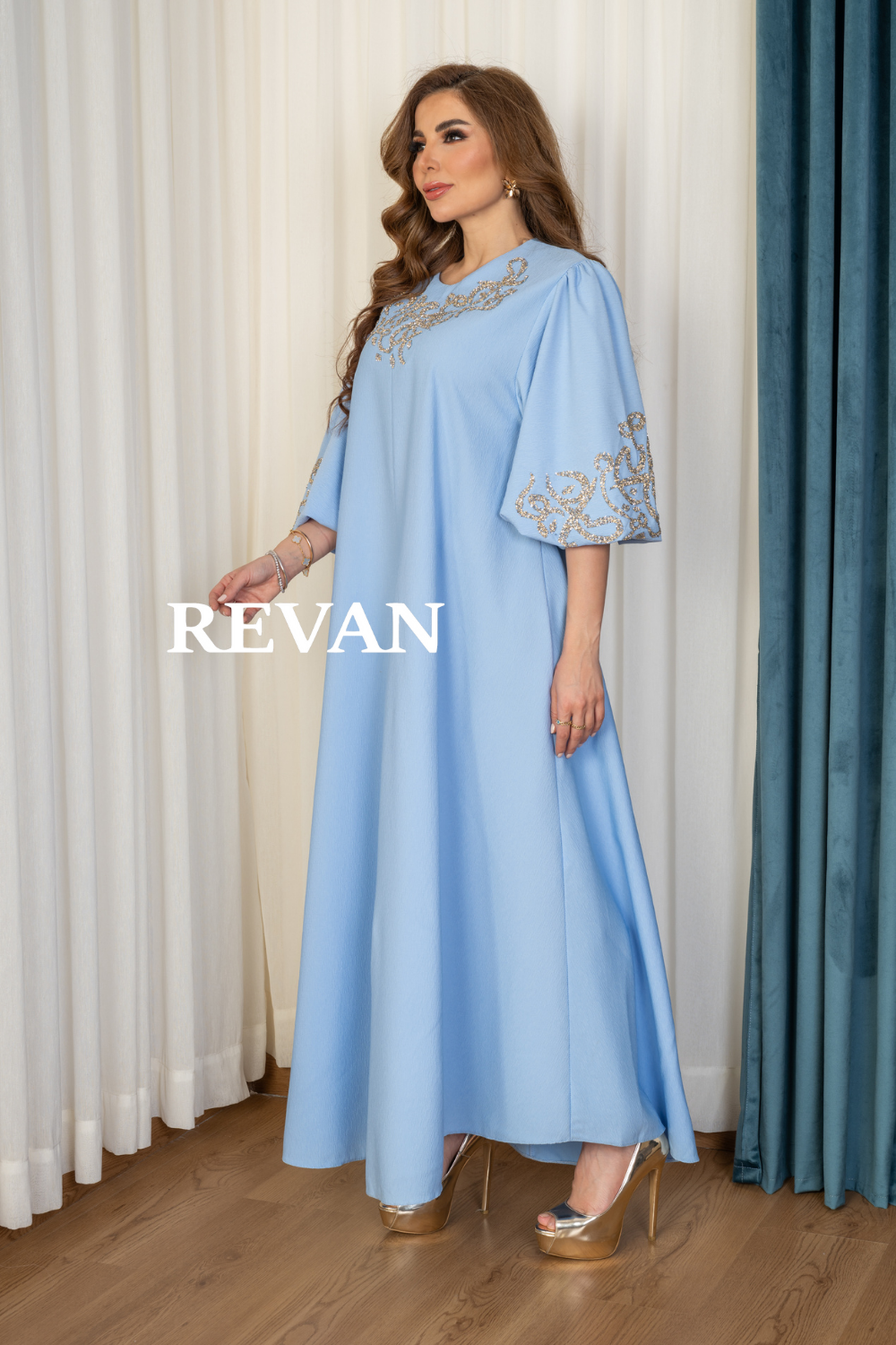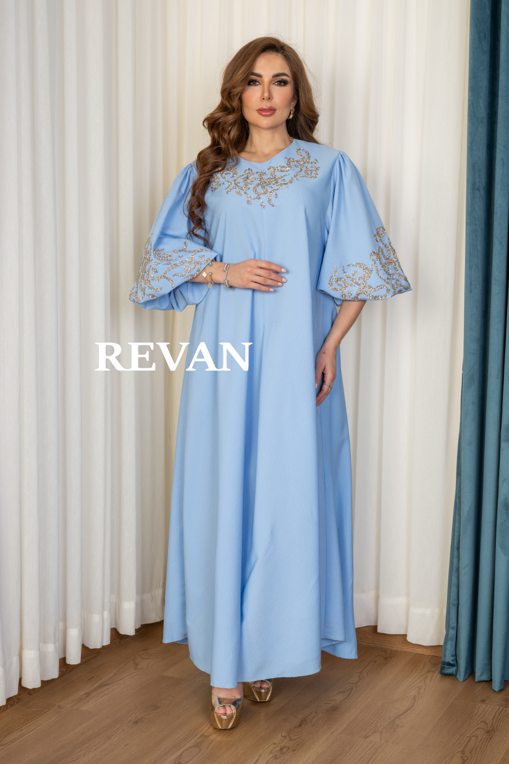الأكمام: فضفاضة مع تطريز فاخر يضفي لمسة فخامة