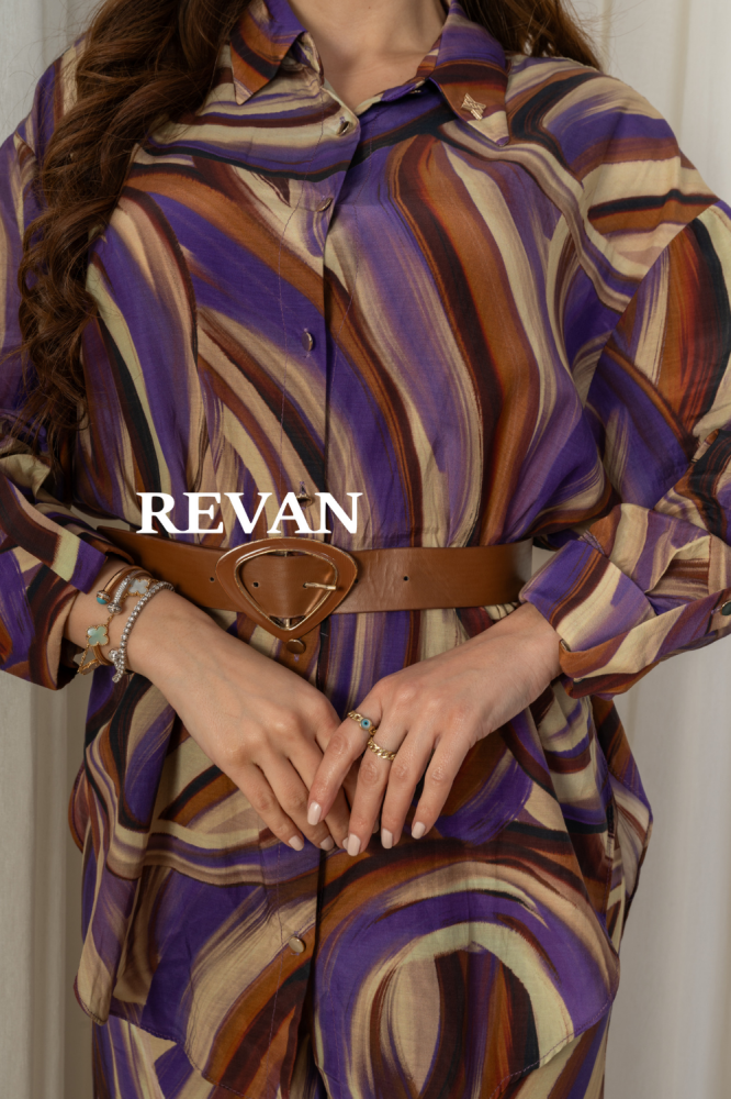 طقم أنيق يجمع بين القميص الكلاسيكي والبنطلون الواسع لإطلالة راقية ومريحة. يتميز القميص بتصميمه الفضفاض وأزرار أمامية مع ياقة أنيقة، بينما يأتي البنطلون بقصة واسعة لإضفاء لمسة مريحة وأنيقة تناسب مختلف المناسبات.