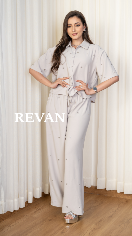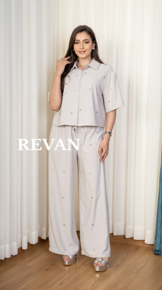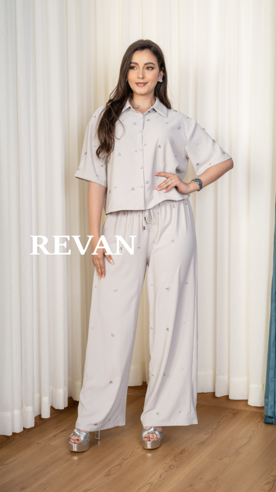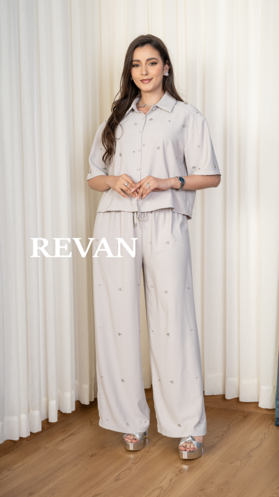 تألقي بإطلالة مريحة وعصرية مع هذا الطقم الكاجوال الأنيق، المصمم بقصة واسعة وانسيابية تناسب جميع الأوقات. يتميز بقميص بياقة كلاسيكية وأزرار أمامية، مع تطريز ناعم يضفي لمسة من الأناقة. البنطال مزود بحزام خصر مطاطي لراحة إضافية وحركة مرنة