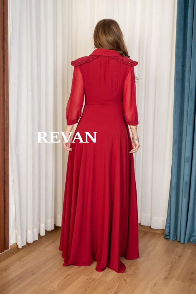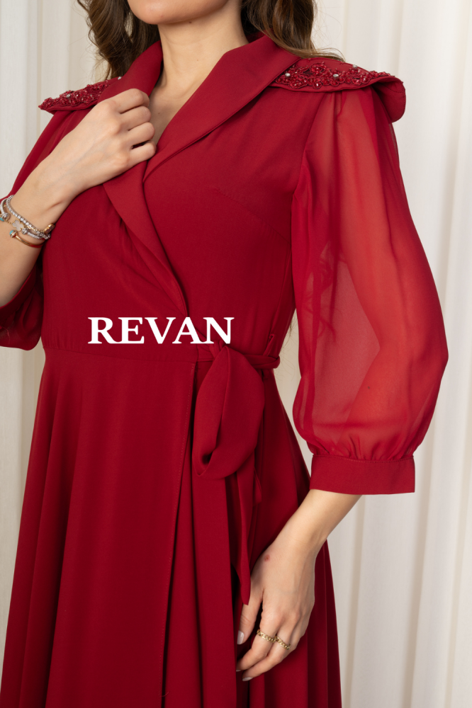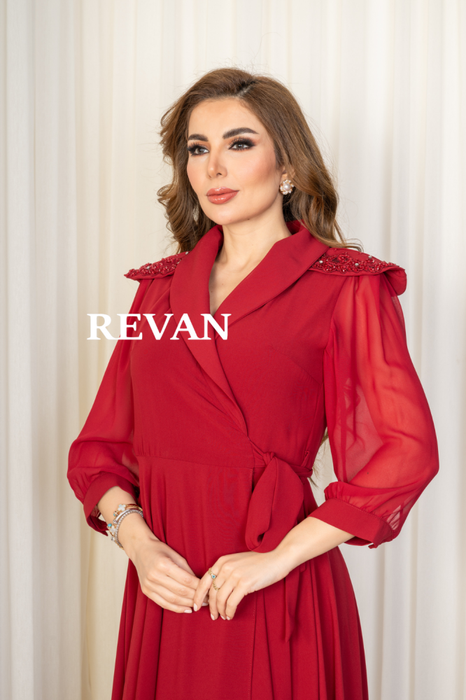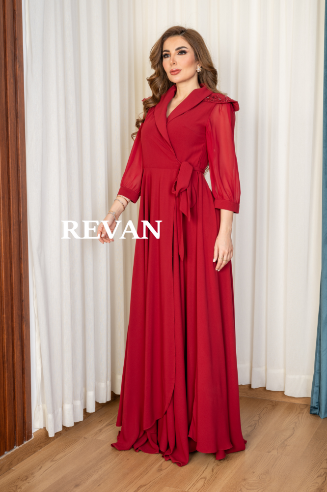 فستان طويل بتصميم راقٍ يمنحك إطلالة جذابة وساحرة. يتميز بقصة ملفوفة وياقة أنيقة تضيف لمسة ملكية، مع أكمام شفافة لمظهر أنثوي راقٍ. مزود بحزام جانبي يعزز جمال القوام ويضفي لمسة من التميز على التصميم.