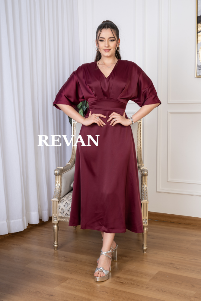 تألقي بإطلالة أنثوية راقية مع هذا الفستان الميدي المصمم بأكمام واسعة ولمسة لامعة ناعمة، يجمع بين البساطة والأناقة ليناسب مناسباتك الرسمية والعملية.