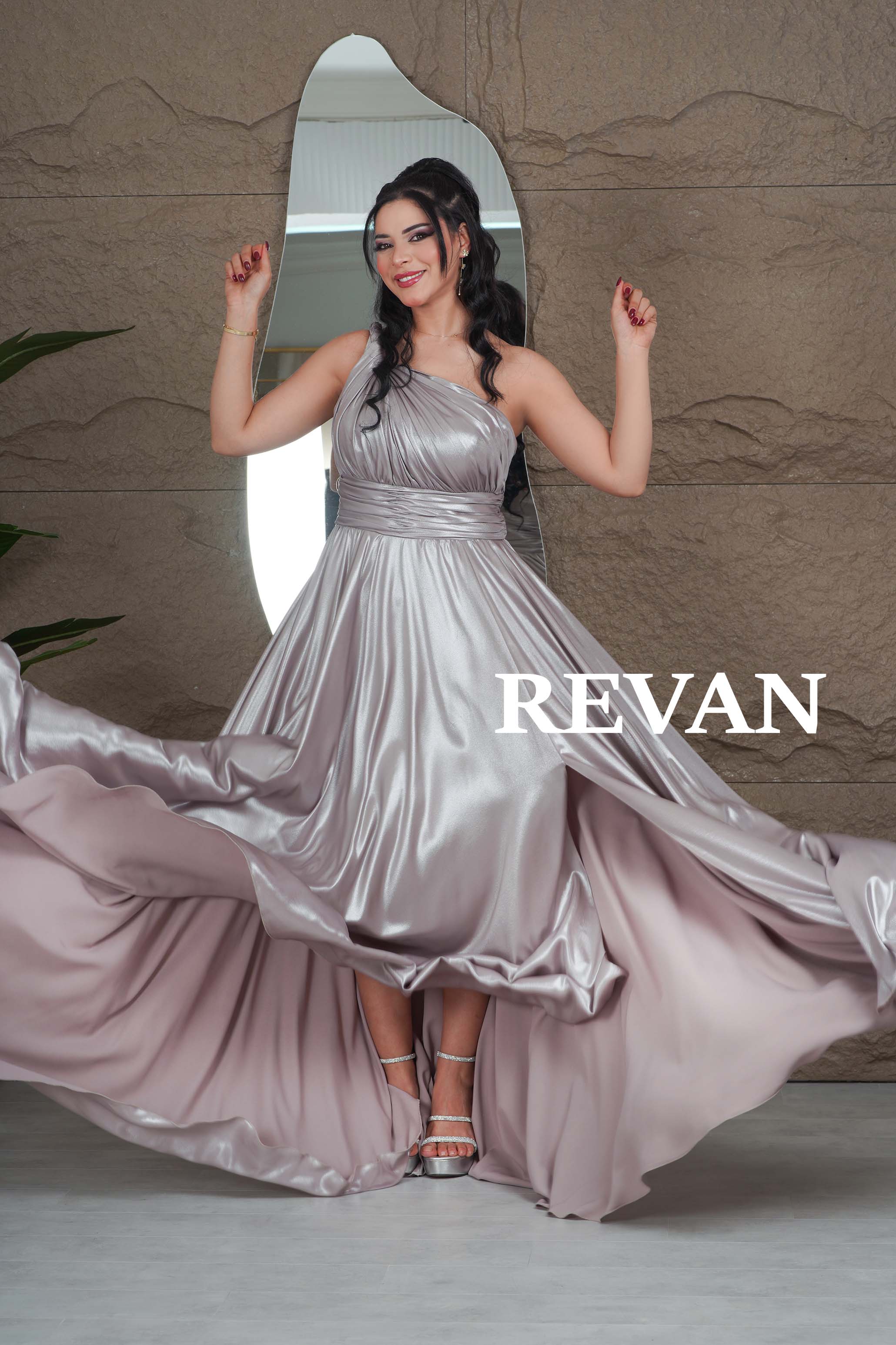 اكتشفي أناقة الفساتين الفاخرة مع فستاننا الطويل المصنوع من الستان الناعم ذو اللمعة الساحرة.