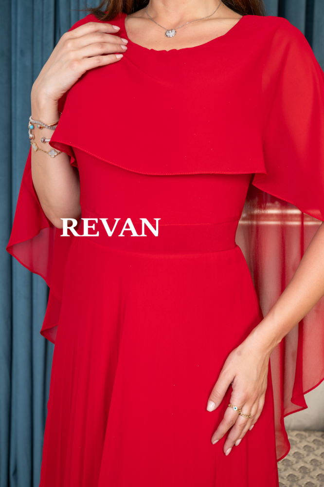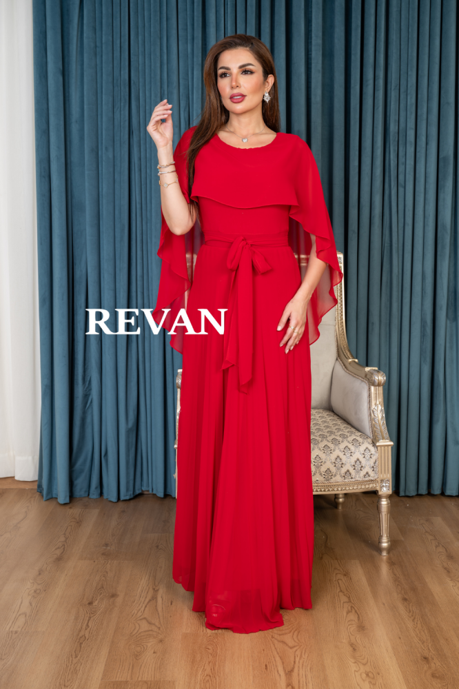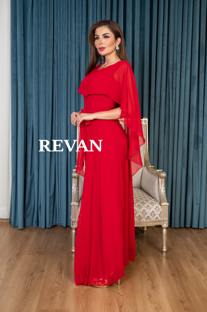- الأكمام: بطبقة شيفون تغطي الأكتاف