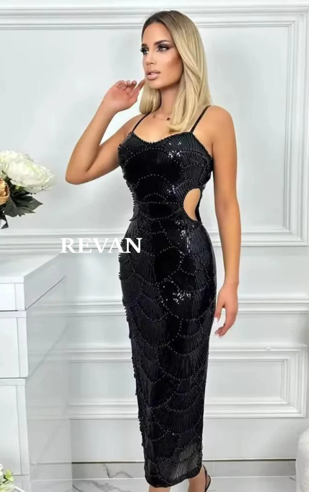 فستان فاخر من ريفان REVAN يأتيكِ بتصميم ساحر يلفت الأنظار بلمسته العصرية وتفاصيله الدقيقة يتميز الفستان بلونه الأسود الكلاسيكي الذي يعكس الأناقة والفخامة مع لمعة خفيفة تتناثر على كامل التصميم بتطريز فاخر يوحي بفخامة السهرات قصة الجسم الضيقة تبرز جمال القوام أما الفتحة الجانبية عند الخصر فتمنح لمسة أنثوية جريئة.