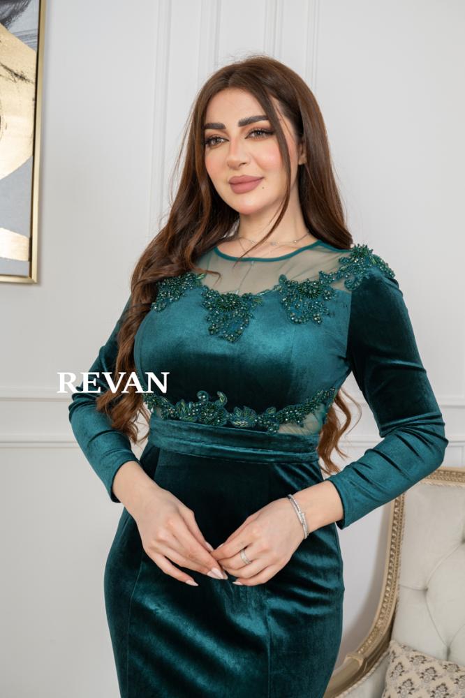 فستان سهره مخمل طويلجمال التفاصيل في الخصروالصدر مع الاكتاف مدمج مع التلباكماتم طويله تبرز جمال الفستان