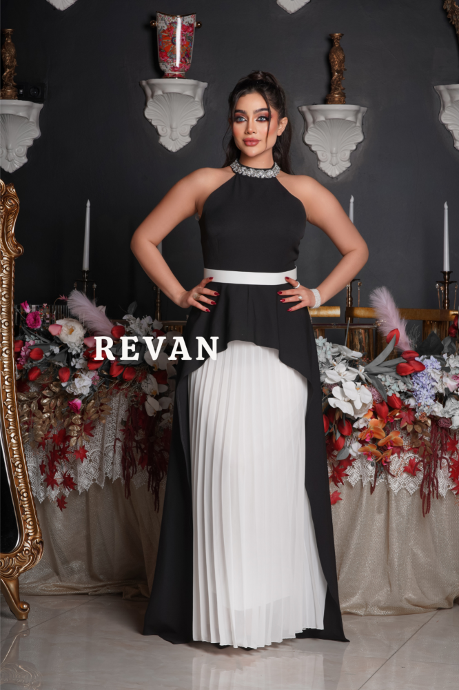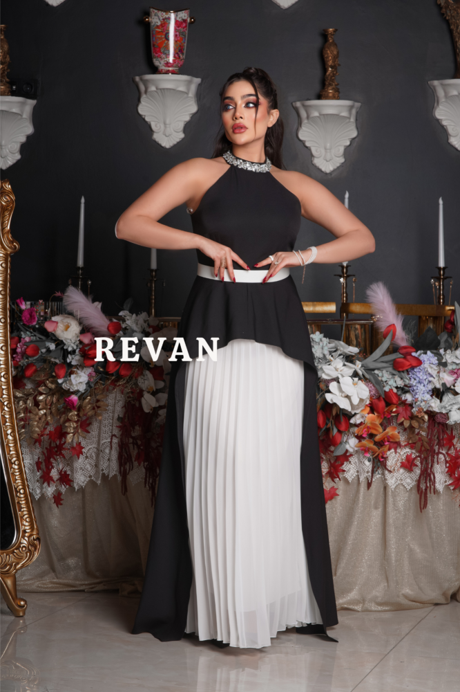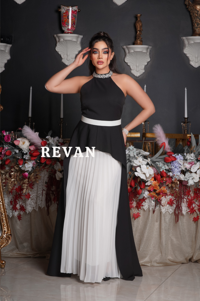 يتميز هذا الفستان الفريد بتصميم أنيق وعصري يناسب مختلف المناسبات.