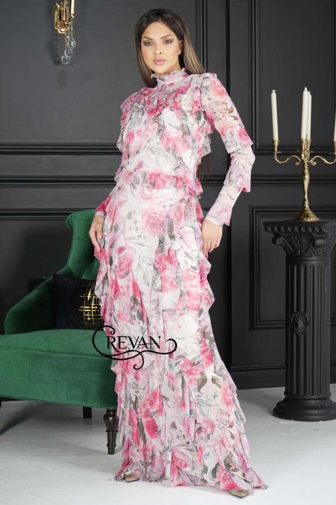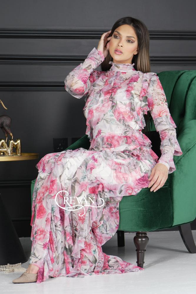 أضيفي لمسة من الأنوثة والرقي إلى إطلالتك بفستان رائع بنقشة الورود المفعمة بالحياة.