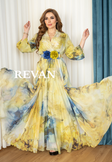 أبهري الجميع بإطلالة فريدة مع هذا الفستان الملكي الفاخر الذي يجمع بين الأنوثة والفخامة. تصميم واسع وانسيابي يعكس الرقي، مع لمسات ألوان جذابة تعطيه طابعًا راقيًا. تزيّن الخصر بحزام مزين بتفاصيل زهرية فاخرة تضيف لمسة جمالية راقية، بينما تمنحك الأكمام الطويلة المريحة إحساسًا بالفخامة والنعومة.