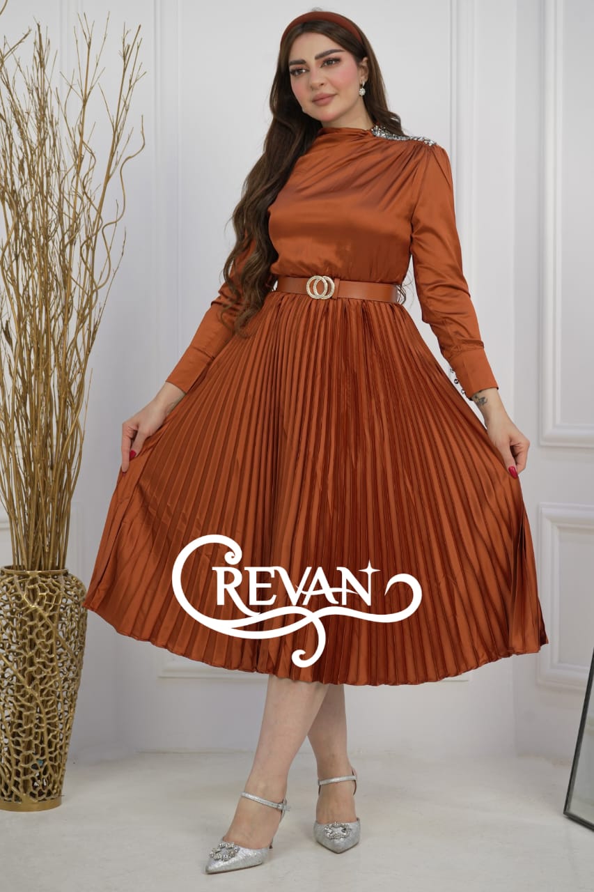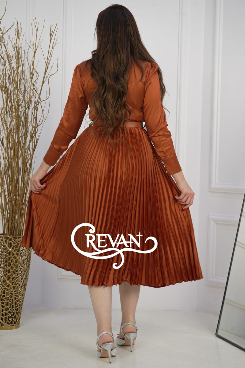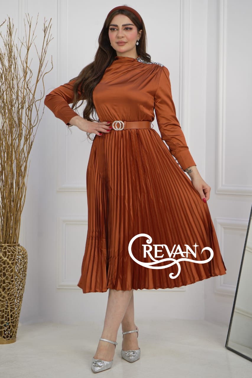 استمتعي بتصميم فاخر بارتداء الفستان الميدي المصنوع من قماش الساتان اللامع.