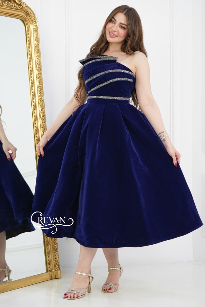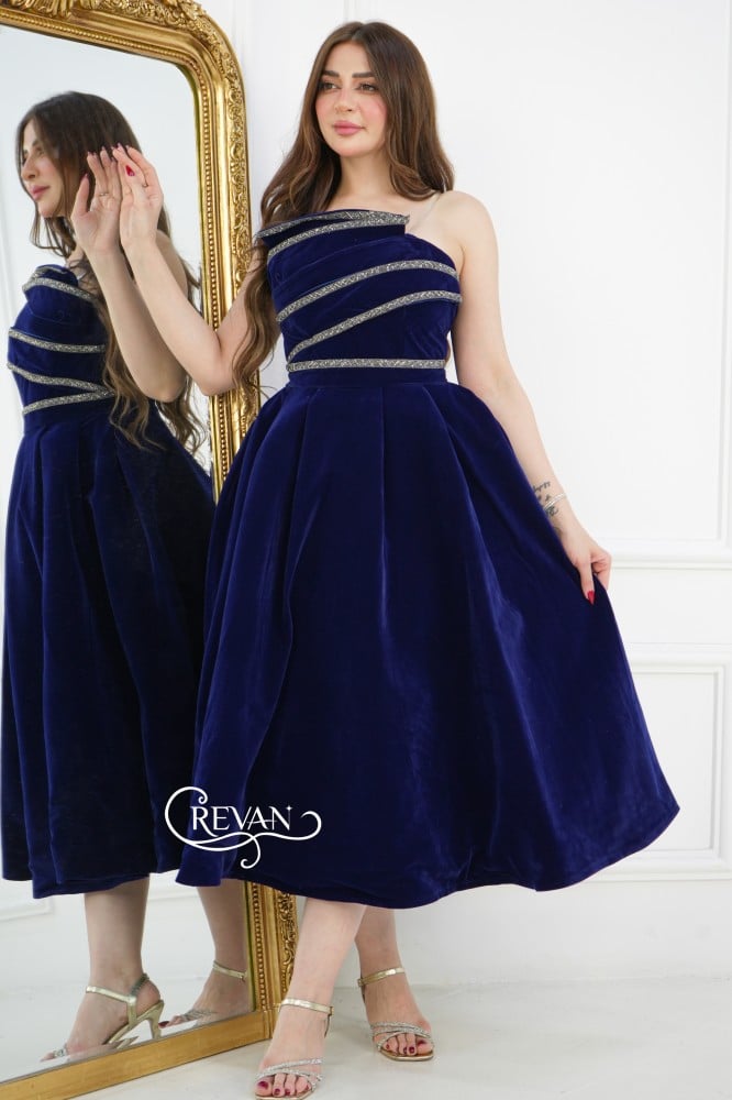 فستان سهرة أنيق مصمم من قماش المخمل الفاخر .