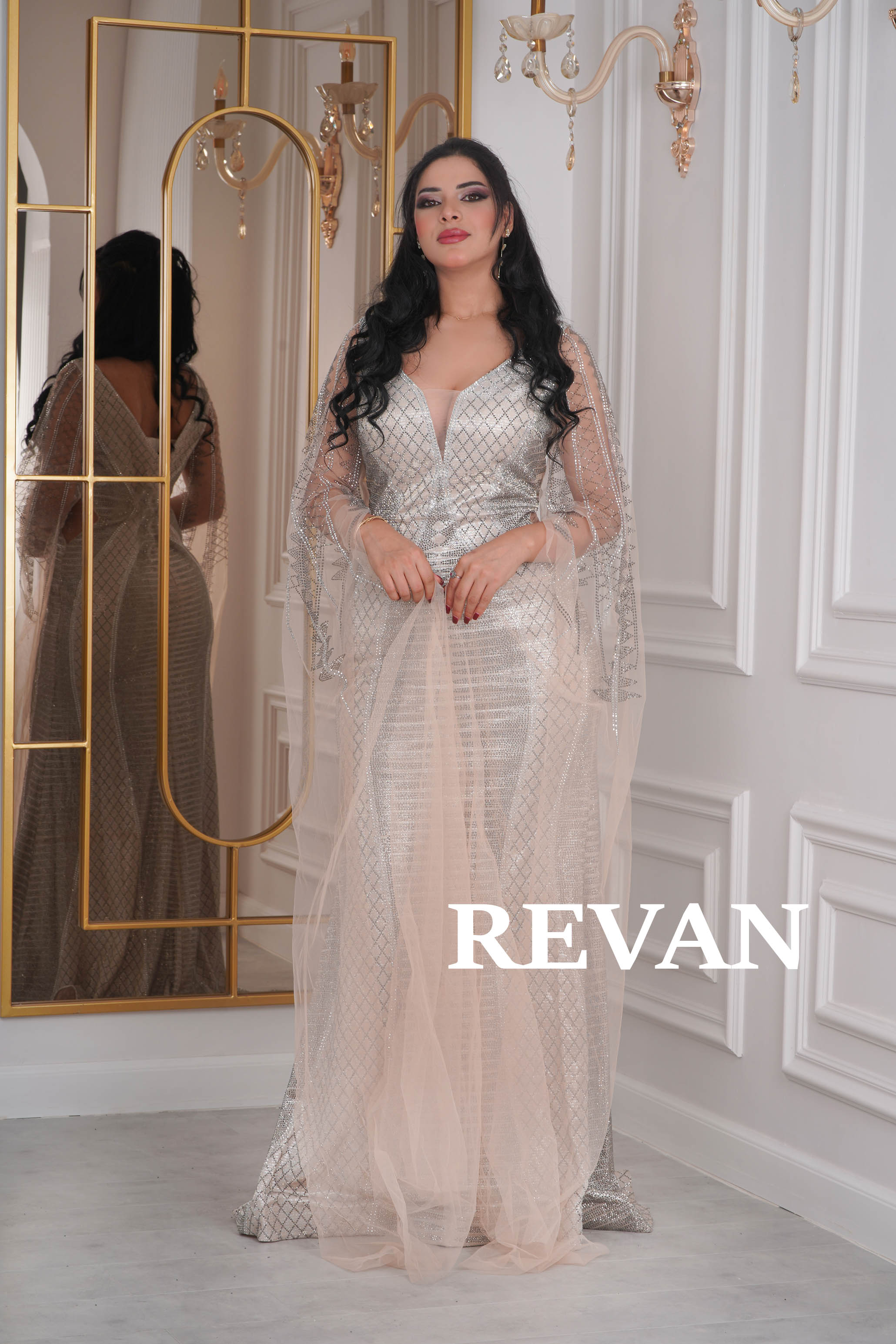 مع أكمام شفافة تضيف لمسة من الرقي والانسيابية إلى الإطلالة.