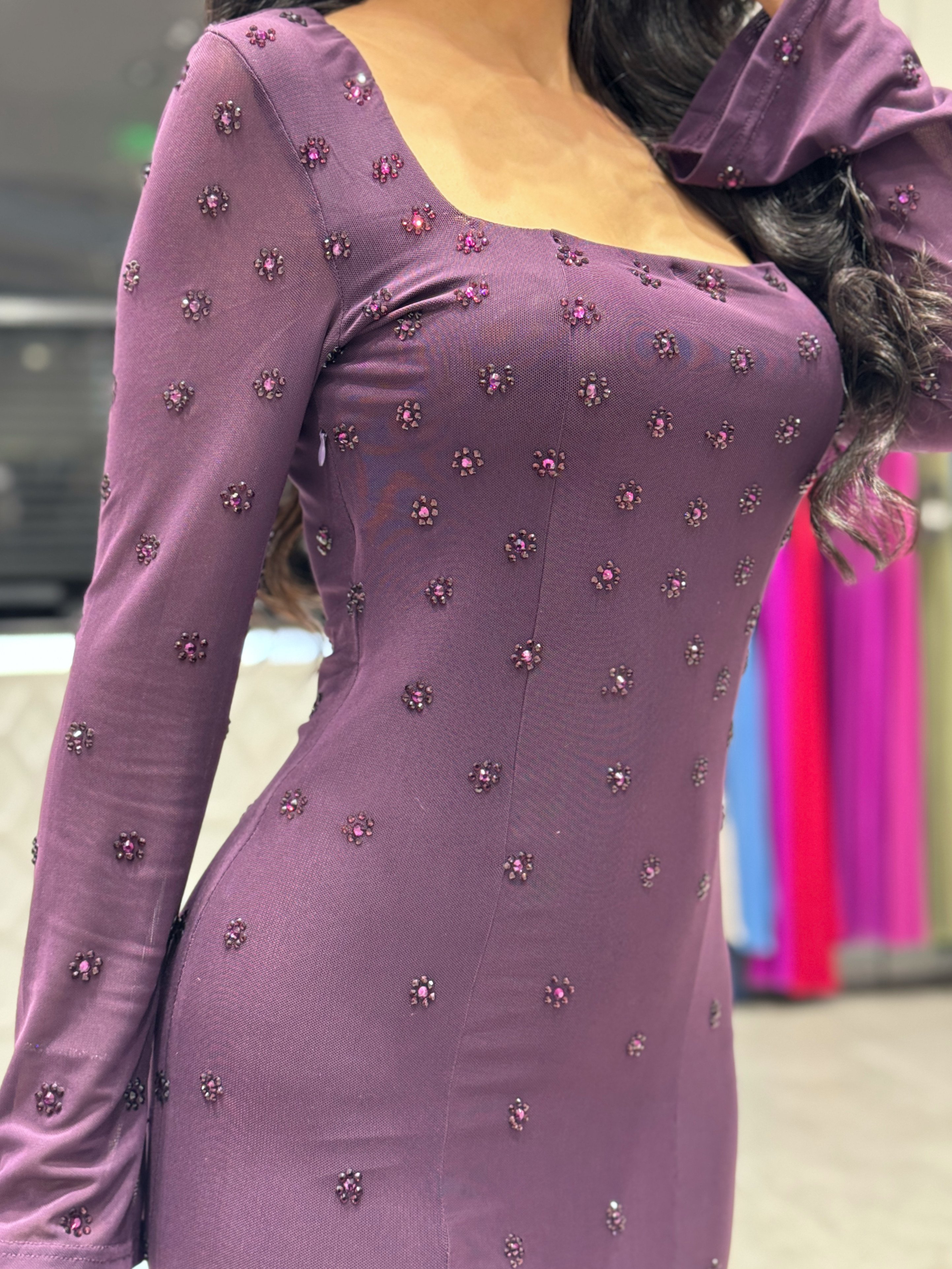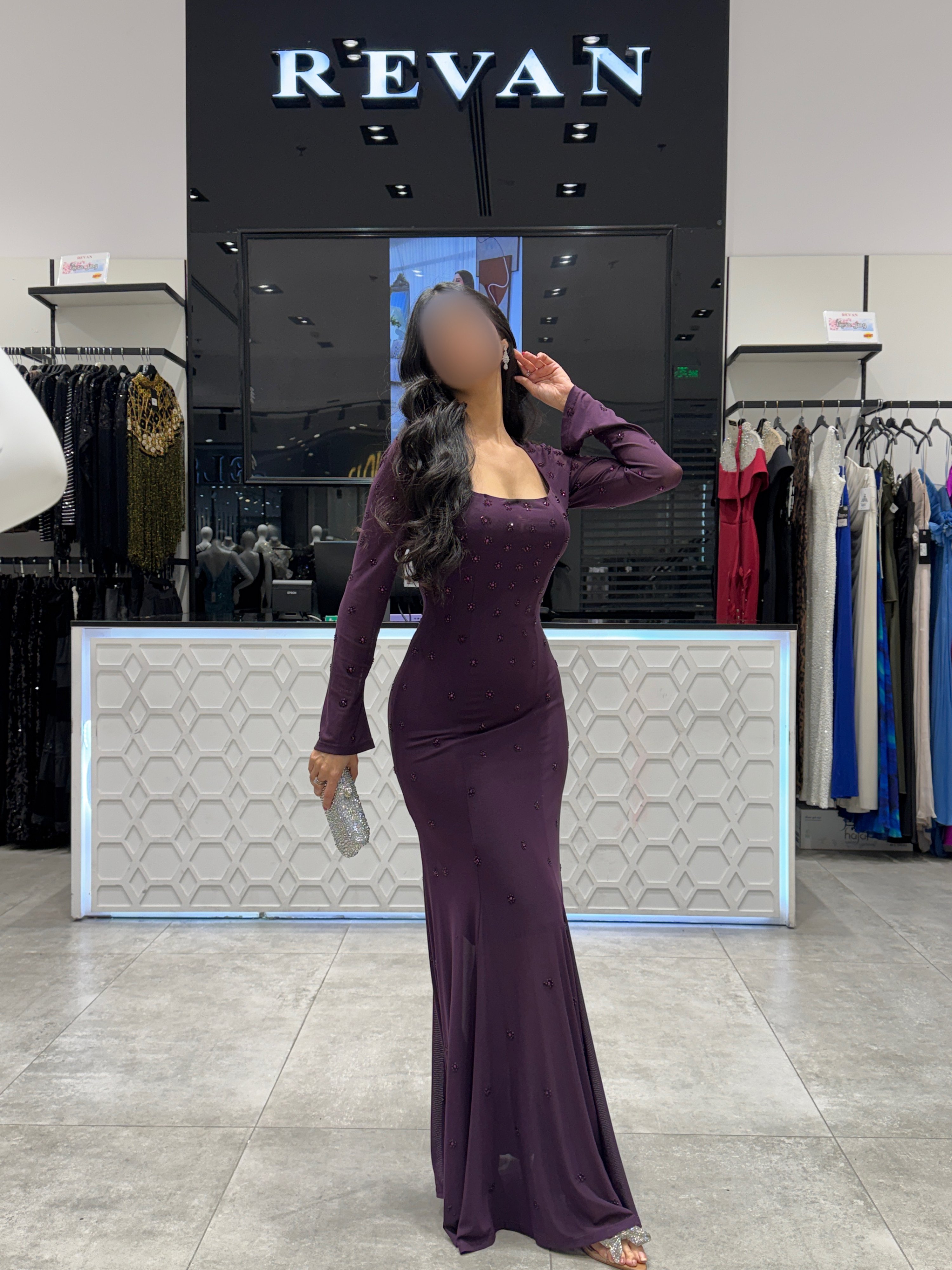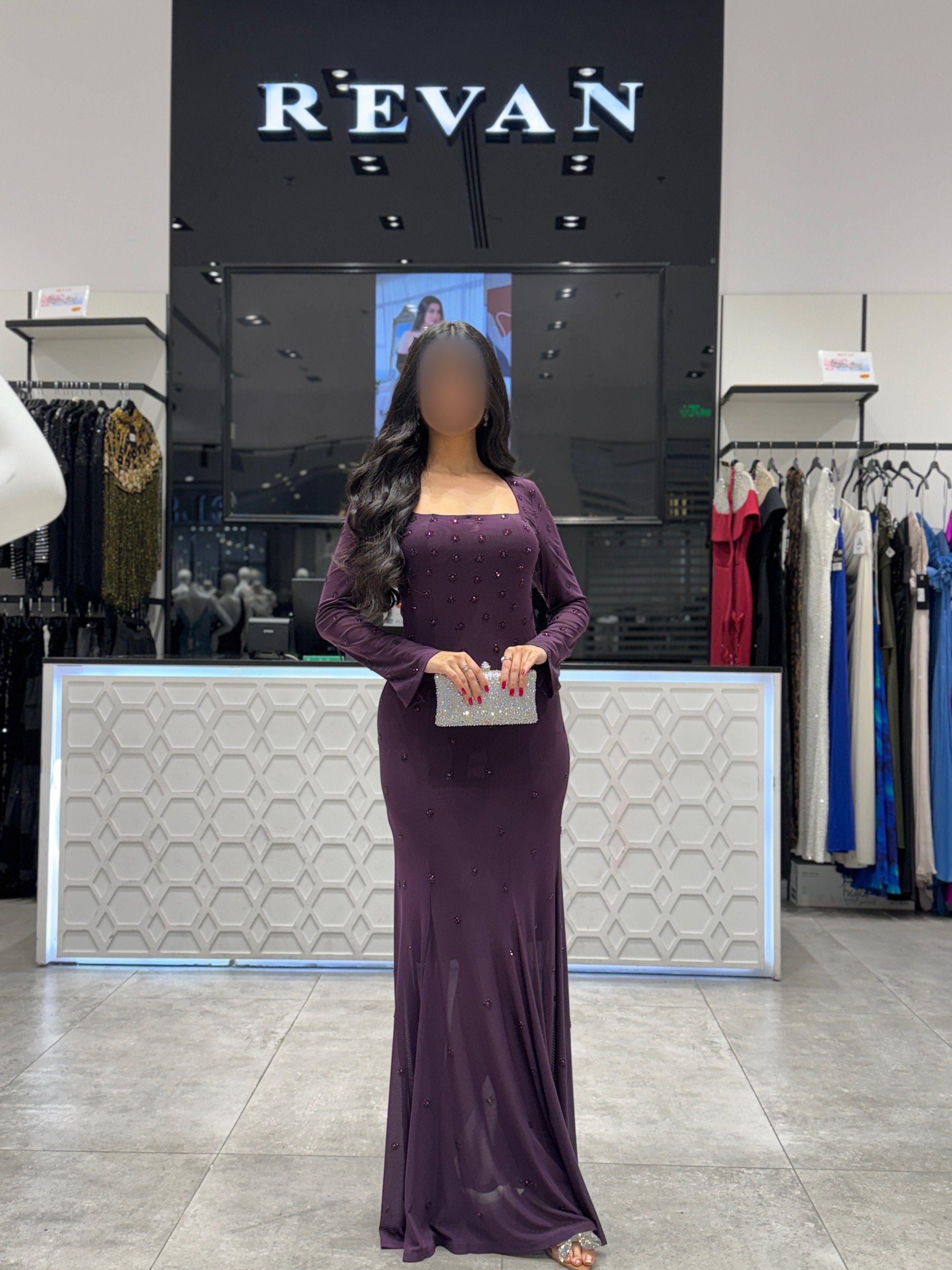 فتحة الرقبة الأنيقة بقصّة مربعة تضيف لمسة عصرية راقية، فيما تمنح الأكمام الطويلة المزيّنة بالتطريز توازنًا مثاليًا بين الجرأة والاحتشام. تصميم صُمم ليمنحك حضورًا واثقًا وإطلالة لا تُنسى في كل مناسبة.