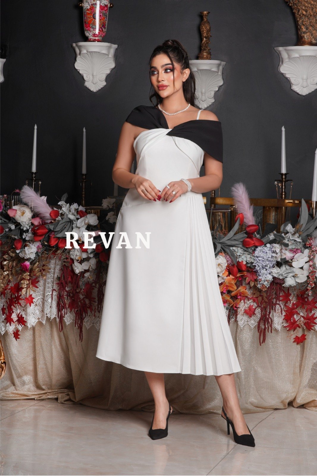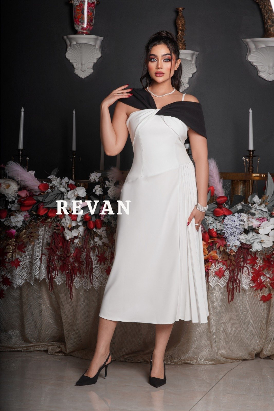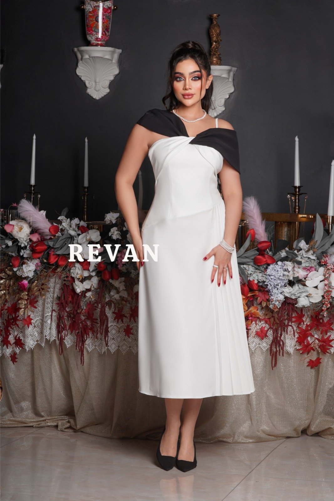 بالإضافة إلى الأكتاف المكشوفة يضيف لمسة من التألق والجاذبية.