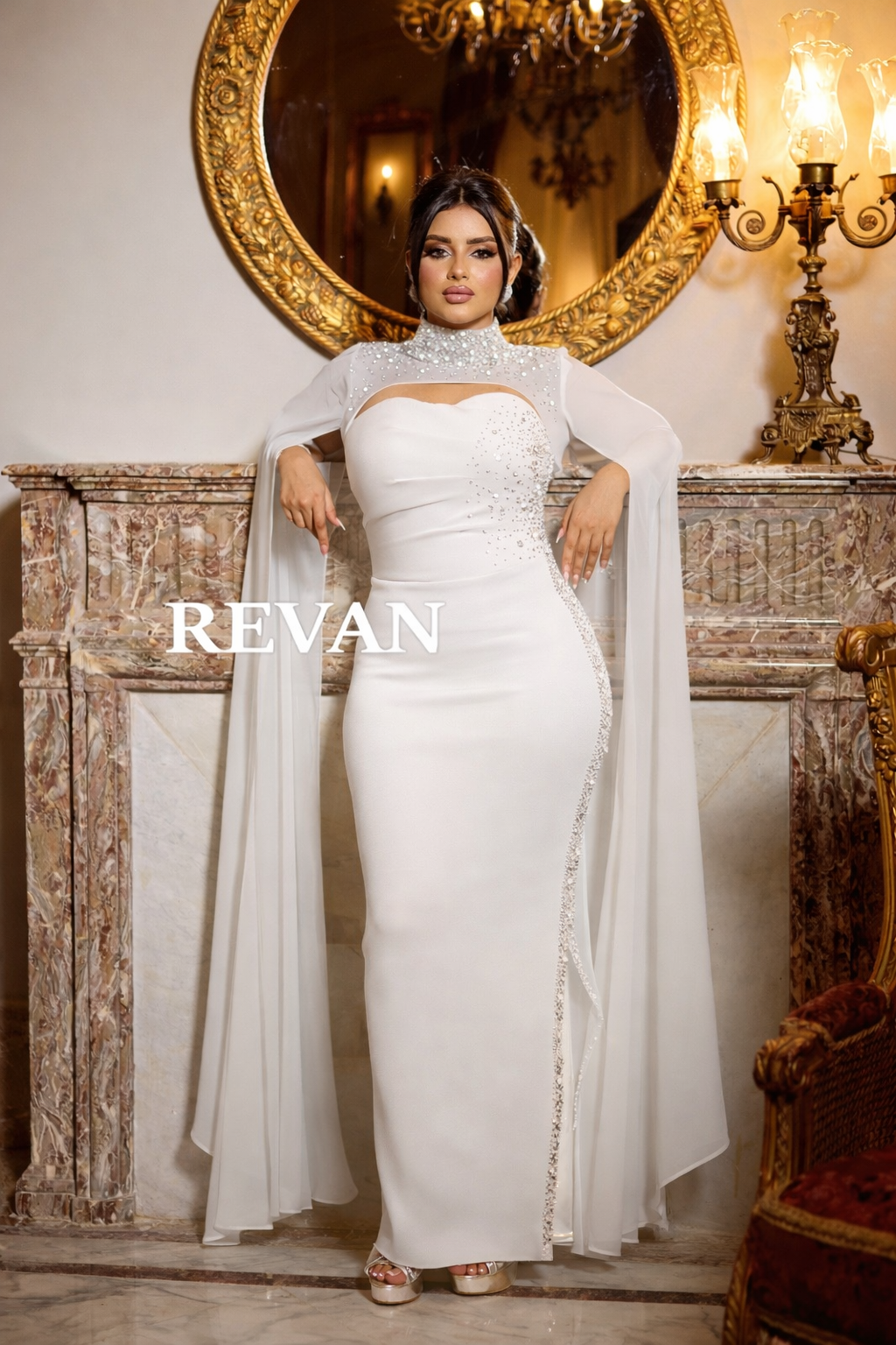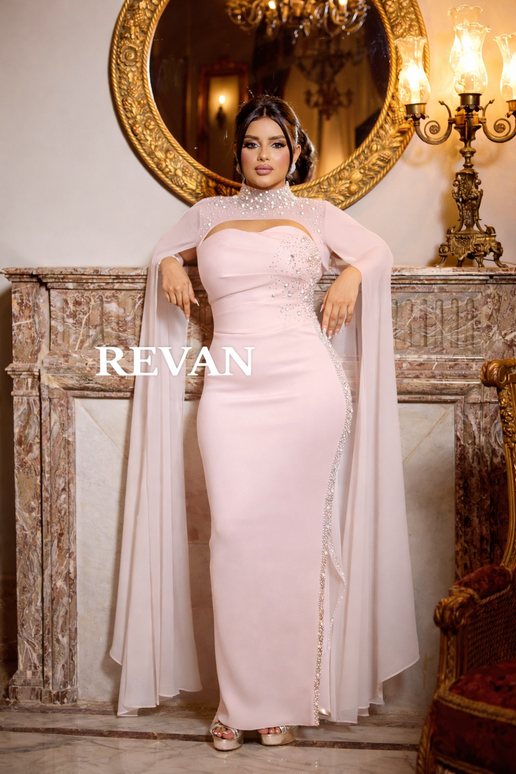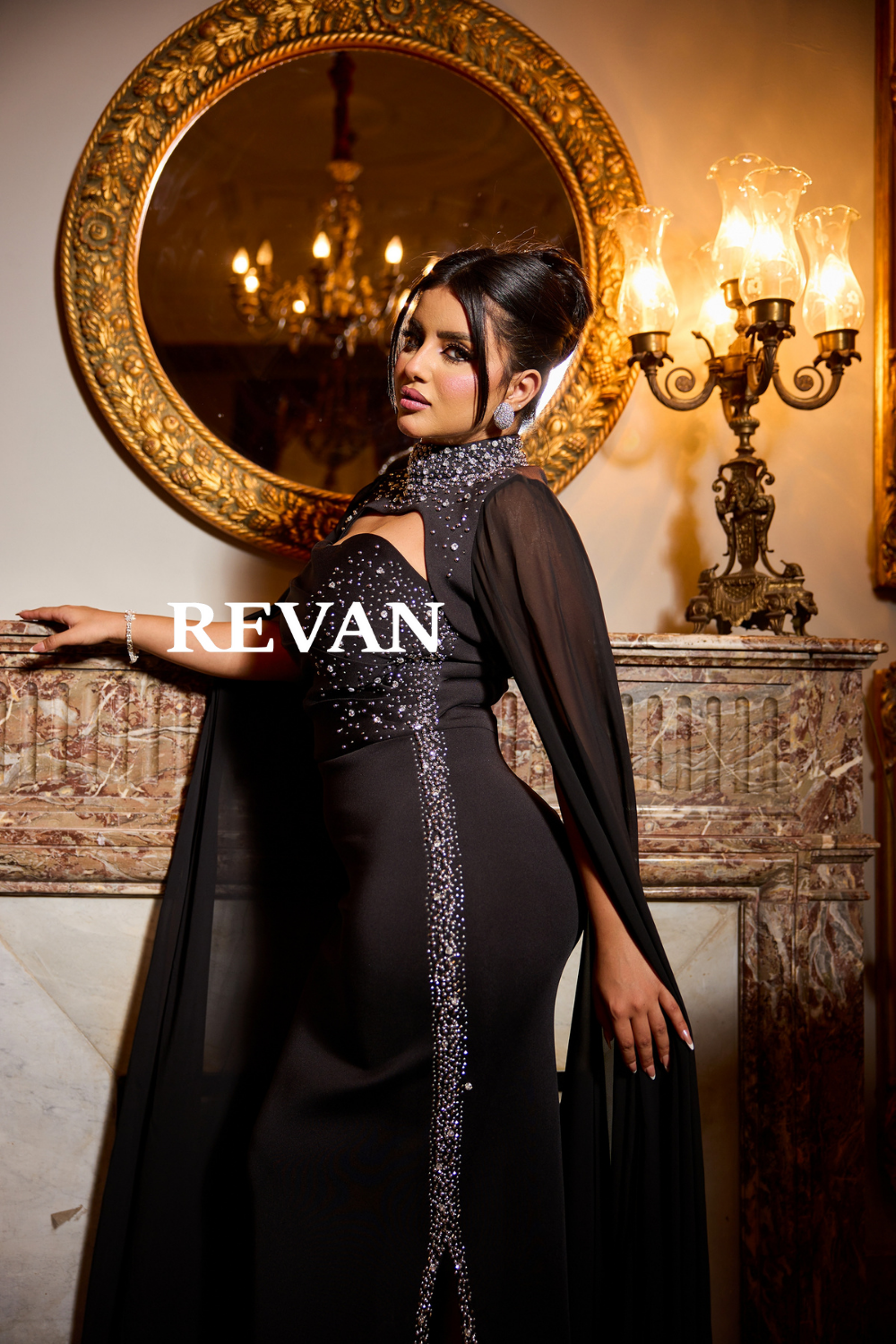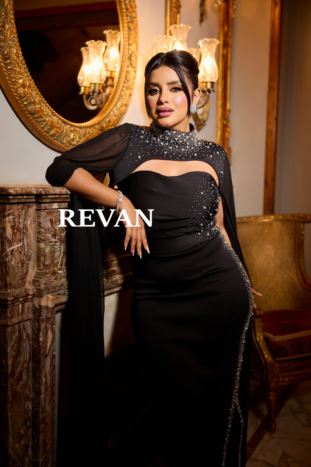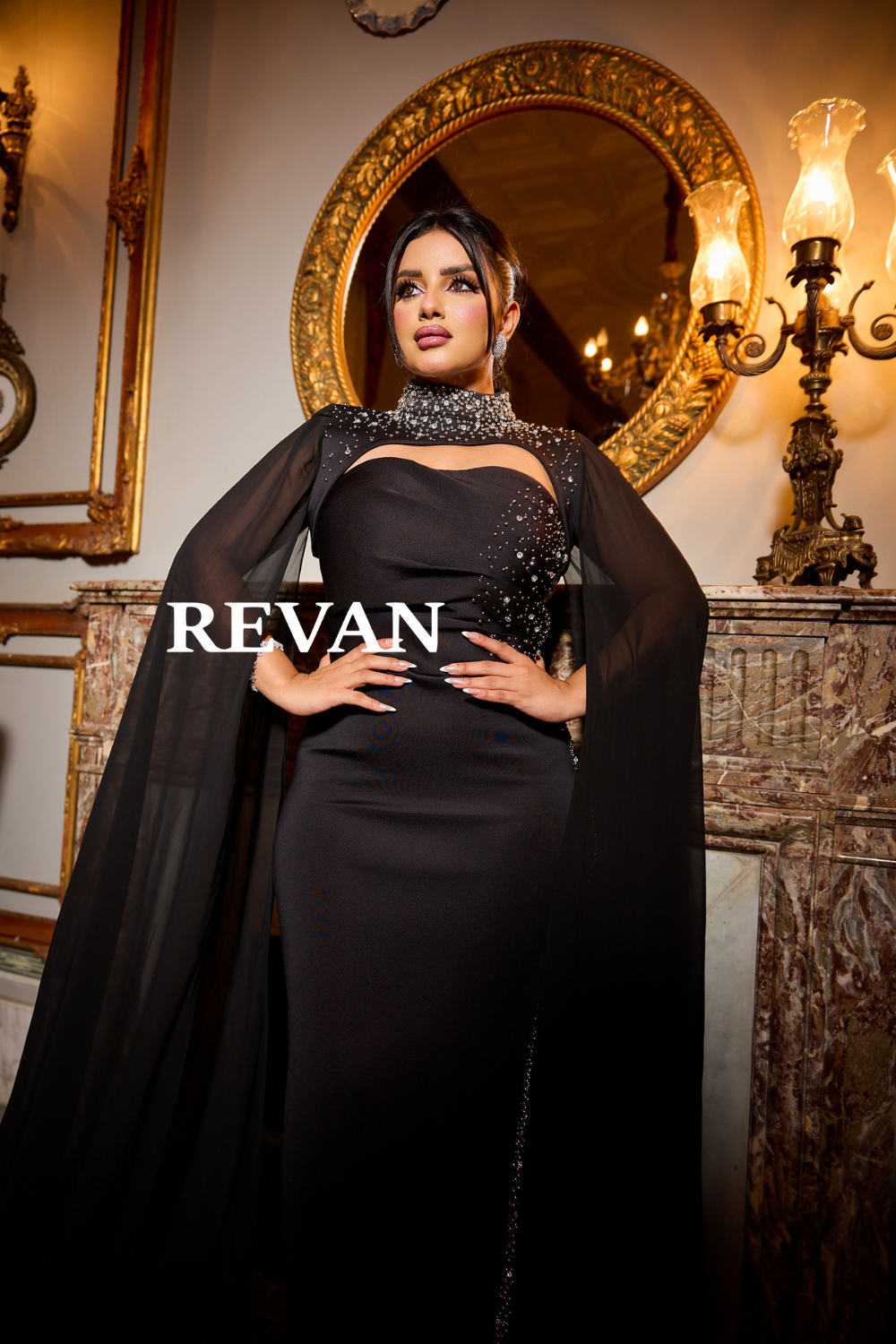 فستان فاخر يتكون من فستان داخلي ضيق من الجيرسي المطاطي يتناغم مع منحنيات الجسم بانسيابية، وكاب شيفون شفاف منفصل يغطي الأكتاف والذراعين بخفة ليمنحك حركة رشيقة وأناقة استثنائية. يتميز الكاب برقبة عالية وفتحة قلبية أسفل الصدر، مع تداخلات خفيفة تضفي لمسة فخامة بدون إفراط في الزخرفة. يجمع الطقم بين البساطة والاحتشام العصري، مما يجعله الخيار الأمثل للسهرات الرسمية والمناسبات الراقية في الهوية السعودية المعاصرة.